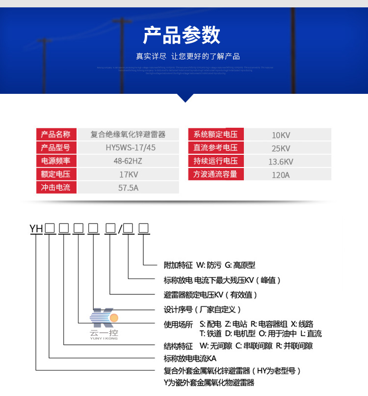 10kV電站型高壓氧化鋅避雷器HY5WZ-17/45